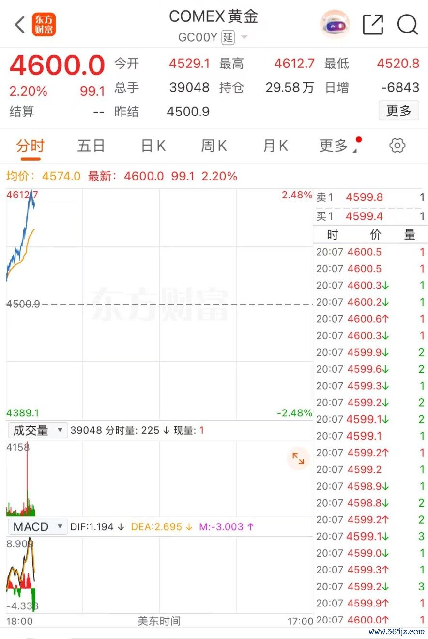 12日早间,贵金属价格开盘便直线飙升,现货黄金价格上涨逾2%,首次站上4600美元大关,新年首月已累计上涨280美元。
