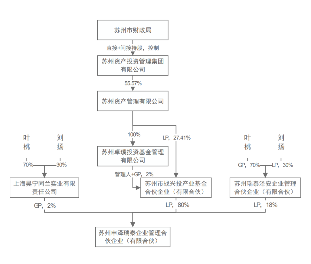 因此,申泽瑞泰由叶桃、刘扬,以及苏州市财政局控制的苏州投管集团共同控制。